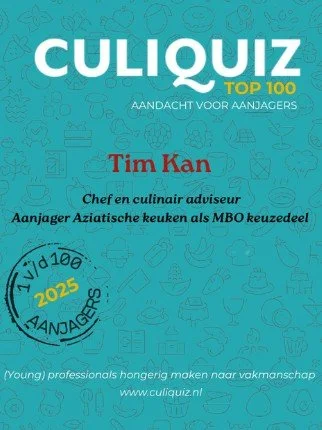 Tim Kan heeft de passie voor eten met de paplepel ingegoten gekregen, want zijn ouders hadden al in de jaren ’70 het Chinese restaurant “Peking” in Schiedam. Zijn oorsprong is Hongkong en Szenshen Chinees en deze roots wil hij culinair blijven eren. Niet voor niets wil hij dan ook de Aziatische keuken een groter podium geven in Nederland en strijdt hij voor meer promotie van de echte Chinese keuken. Dit doet hij door zich in te zetten als chef van het restaurant dat bij supermarkt Wah Nam Hong hoort en als leraar op verschillende ROC’s waar hij Aziatisch kookles geeft.